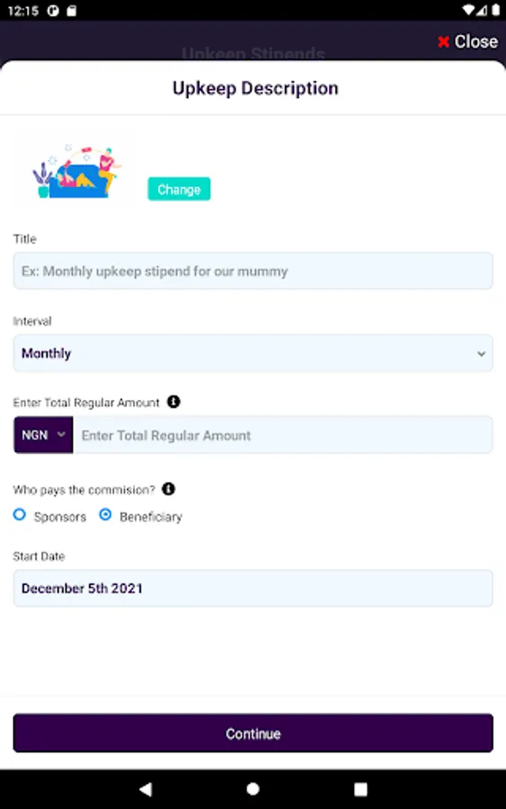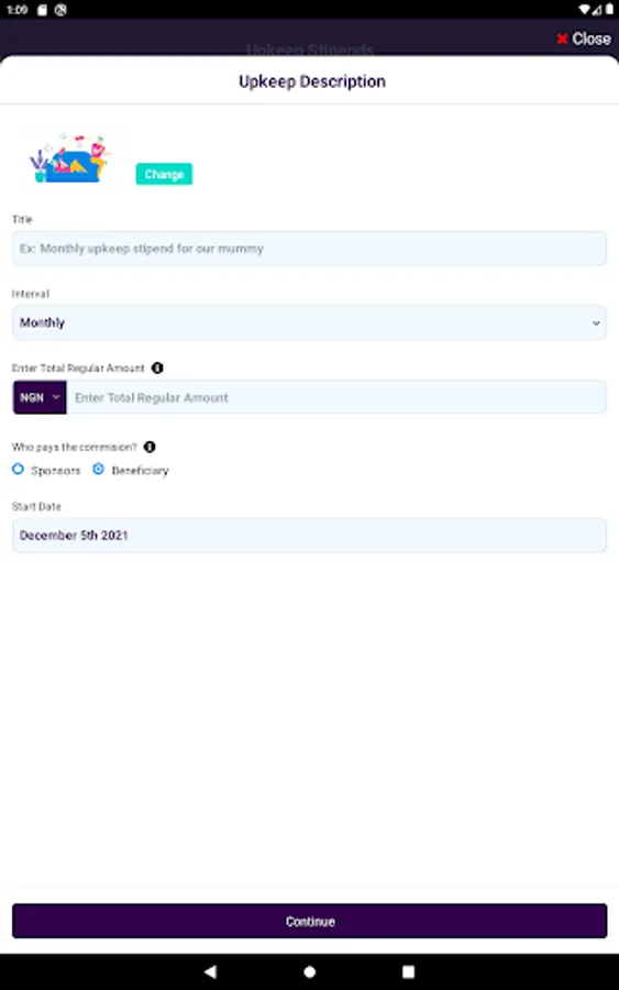 - Upkeep is a scheme whereby one person or a group of sponsors agree to contribute a regular amount of money to a single beneficiary like dependent parents or siblings. It can also be setup for the regular upkeep or maintenance of a common project or a set goal. Each sponsor can choose to overpay or underpay their accepted pledged amount.