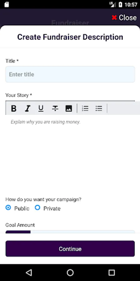 - Fundraiser campaign can be set up for charity, social cause or anything dear to you. It can be a private or public fundraiser. A private fundraiser is when the campaign cannot be searched publicly on our app or website, but can be accessed by whosoever has the link. Also, you can sell merchandise, like 'aso-ebi', that are related to the specific private fundraiser. You can decide if the donors can see the raised amount or not.