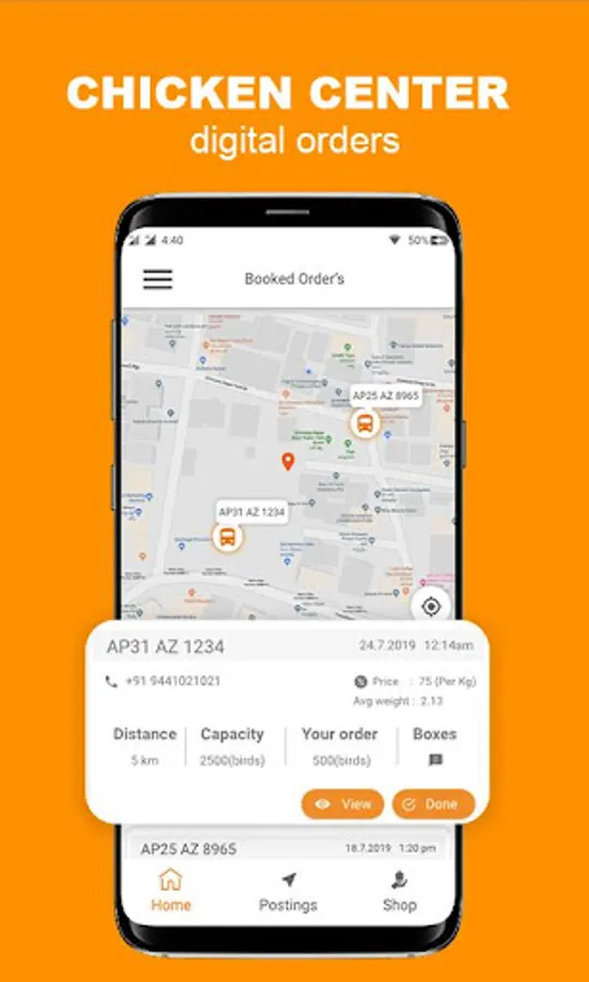 - Live location tracking of vans, which will allow you to know where your products are right now. You can track how close they are to the retailer or farmer – and you can provide your buyer/seller with the real-time information whenever they ask for it without calling the driver. You can also send SMS alerts to the chicken shops about the van’s location.