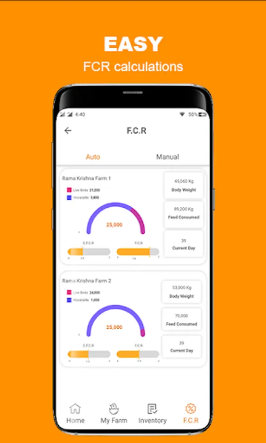 - Feed conversion ratio (FCR) or feed conversion rate calculator will help you to determine the right amount of food needed to make your chickens give the desired output. If you want to grow a profitable poultry farming business, this feature will help you greatly. You want to make sure the “Papaak” of your chickens are strong – right?