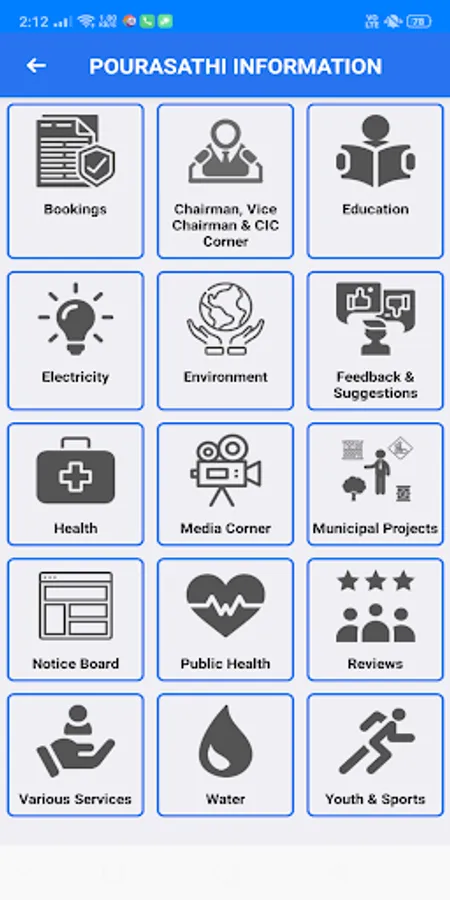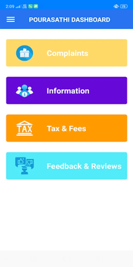 3. This is the main menu page of POURASATHI application. From here, the end user will be able to interact with the administration software. This page contains 2 (Two) icons and 1 (One) Quick Link.