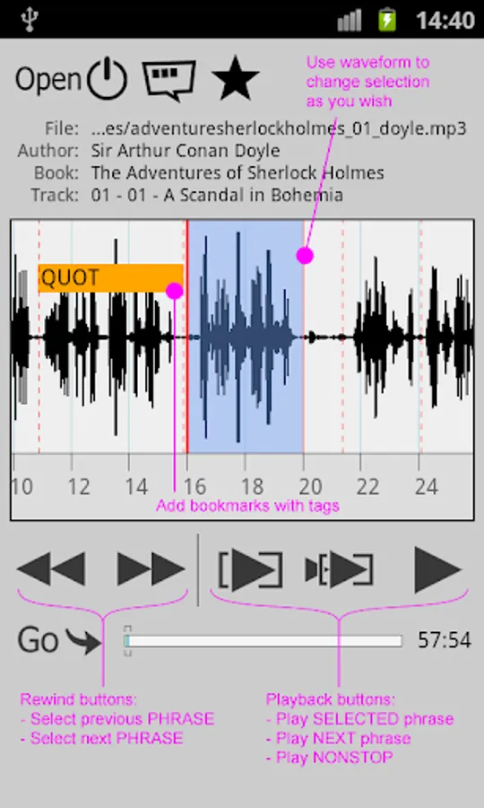 -- Automatically splits audiobook into PHRASES;