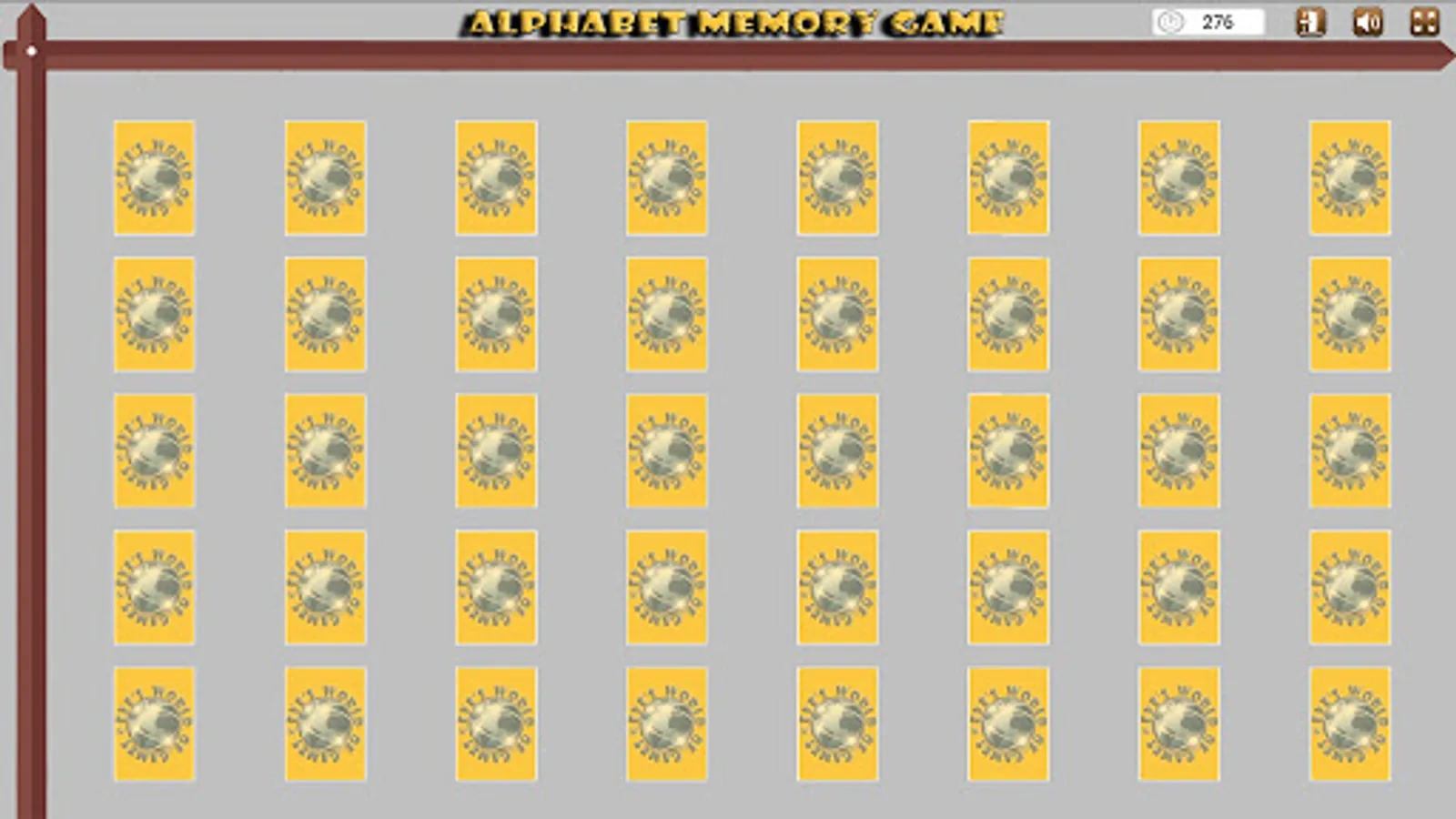 Memory match game with different types of selection (numbers, alphabet, cards and icons).