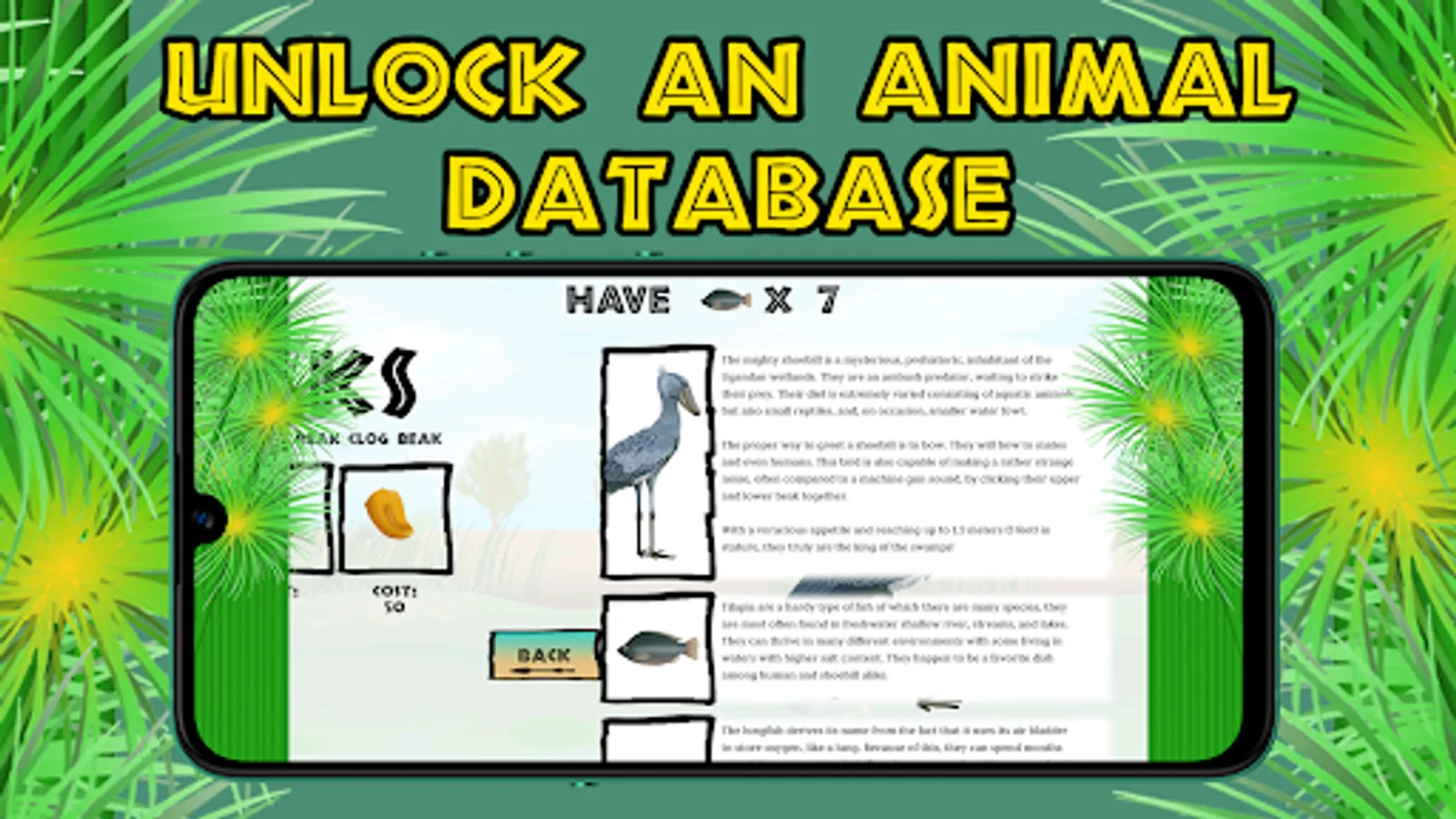 Featuring upgradable beak strength. Unlockable beak skins and information about all the animals in the wetlands.