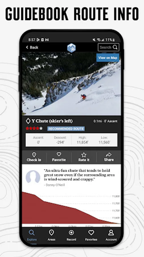 With the thoroughness of a printed map, we offer full GPS route info, elevation profiles, interactive features, photos, and more. Like a guidebook, we suggest the best featured ski lines to explore—either near your current location or in an area you search for. Local experts show you the highlights, challenging features, and insights you need to plan a great day in the snow.
