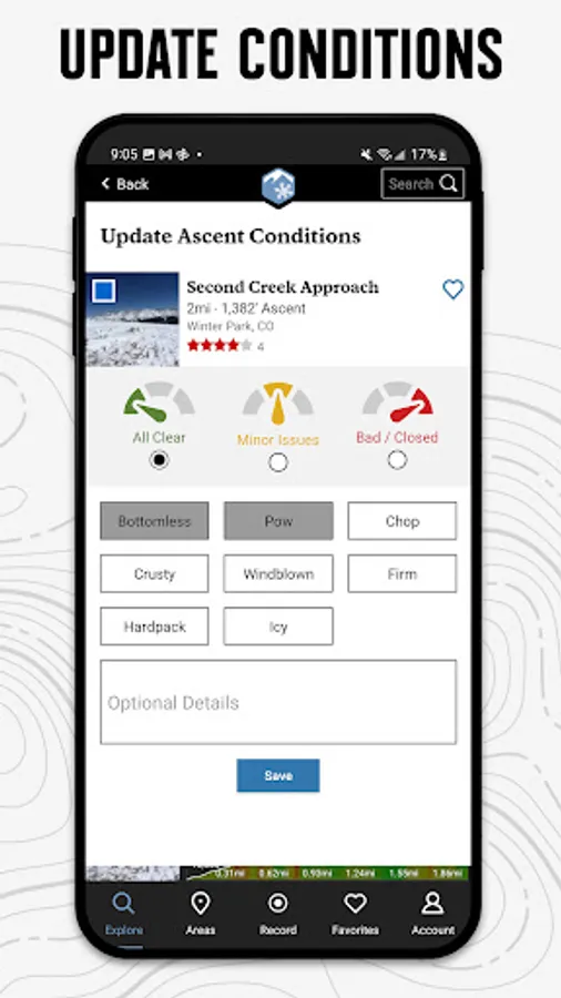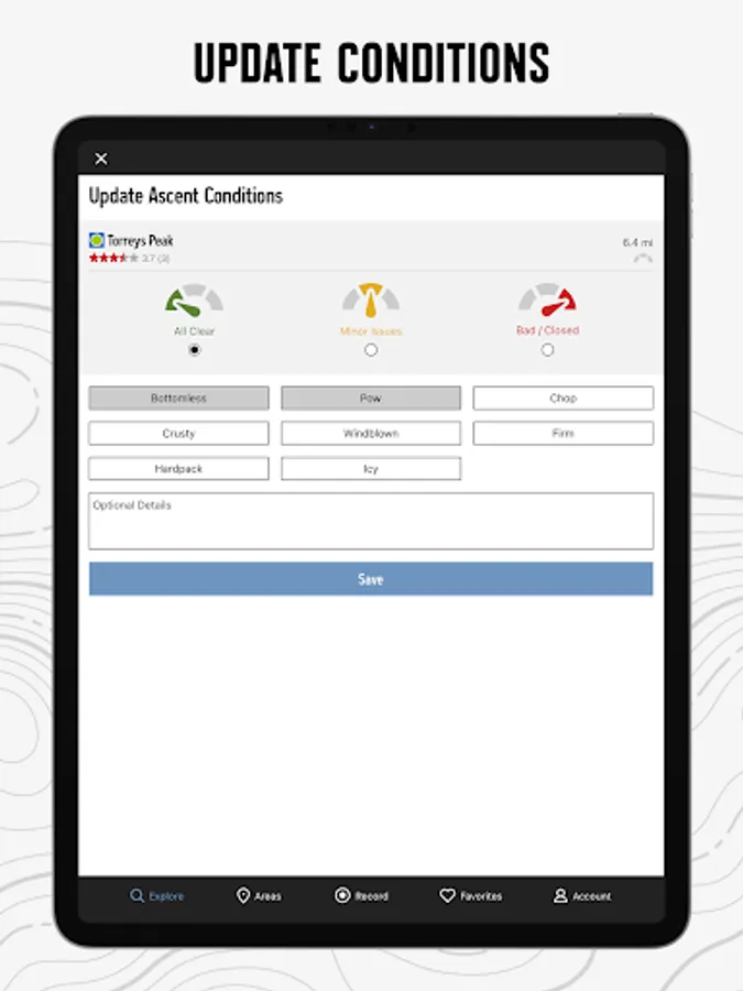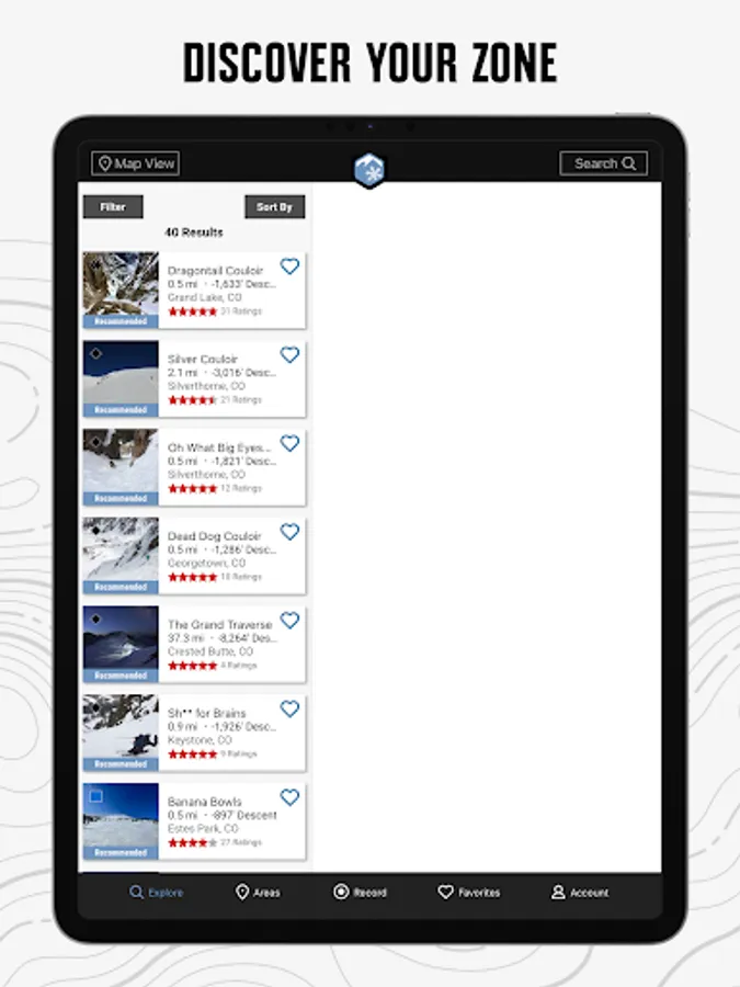 • Enjoy high-resolution photos and detailed topographical trail maps.