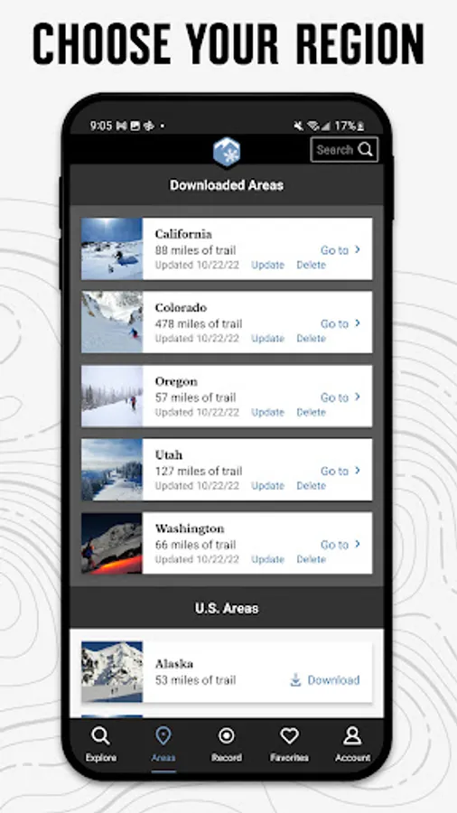 • Downloaded trails work offline for when you’re off the grid. (No cell reception required!)