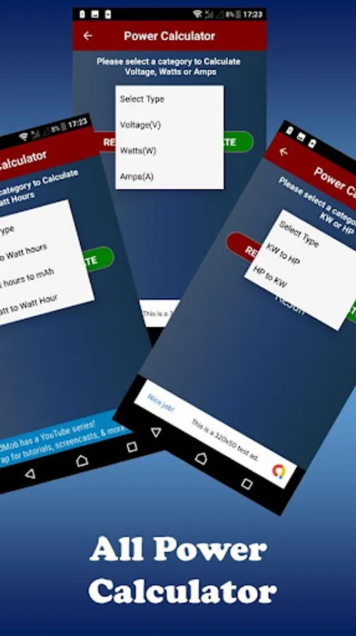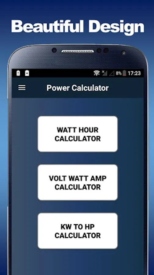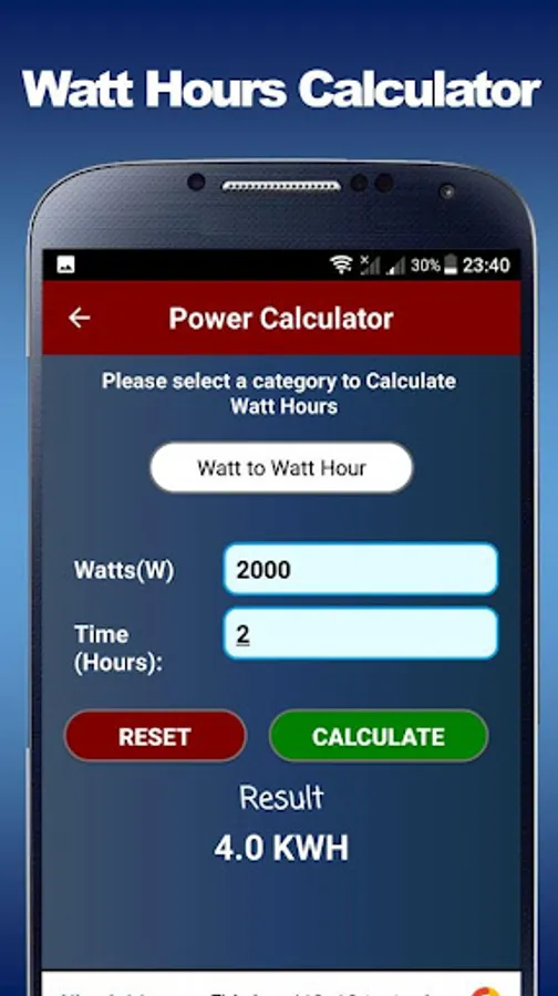 If you want to get watt you just select this option and put voltage and ampere values and get total watts.