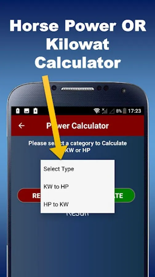 If you have a water motor or any other electric motor and you want to know the motor total horsepower or kilowatt than you select this option just put horsepower value or kilowatt value and get your desired values.