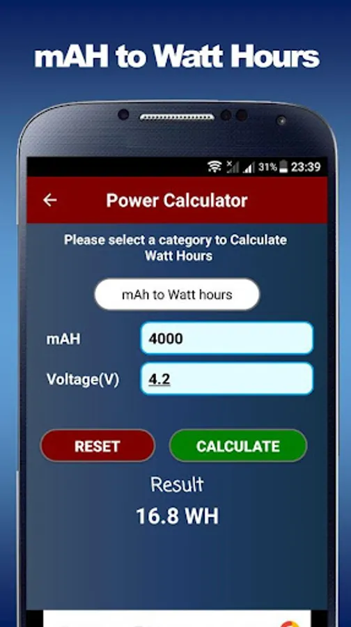 For example, you have a battery with written 40WH with 12V and you want to calculate the battery mAH than you just select this option and put values of WH and Voltage, you will get battery mAH.
