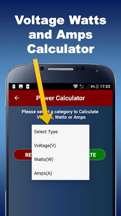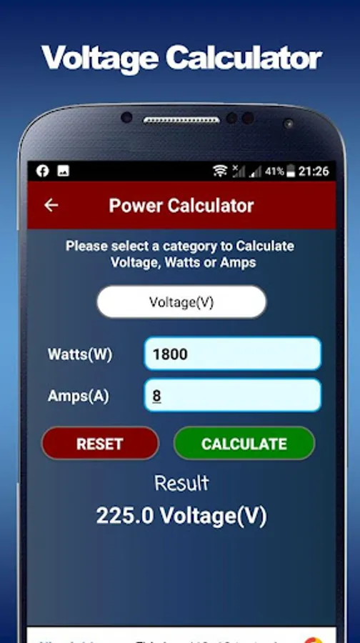 If you want to get the voltage you just select this option and put watt and ampere values and get total voltage.