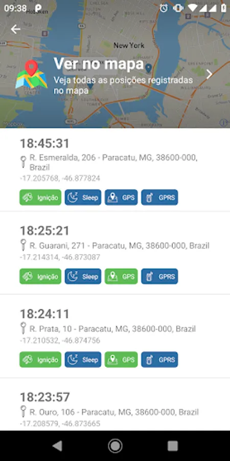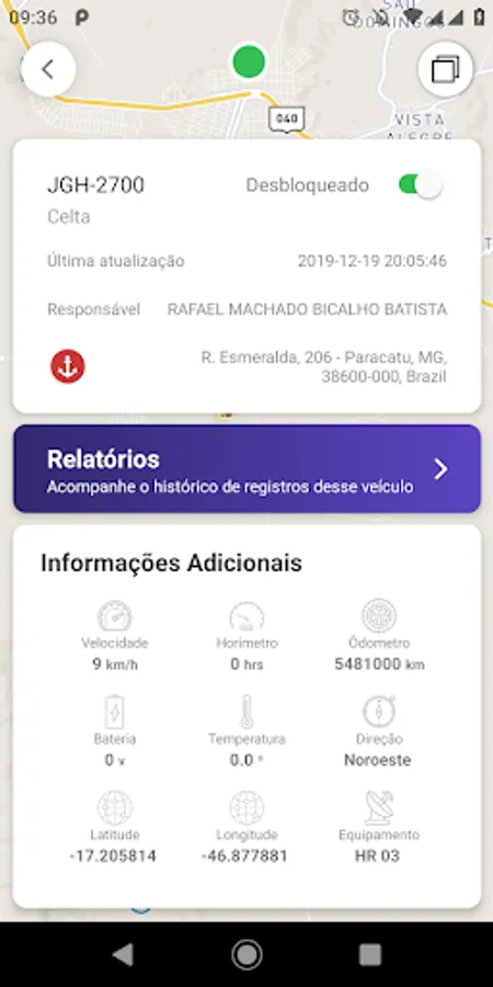 Map7's Mobile Application, which allows the location of vehicles in real time, in addition to the latest records, with address, date and time and the route taken by the vehicle.