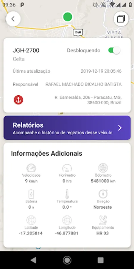 Mobile Application of Noble Truck, which allows the location of vehicles in real time plus the latest records, with address, date and time and the route taken by the vehicle.