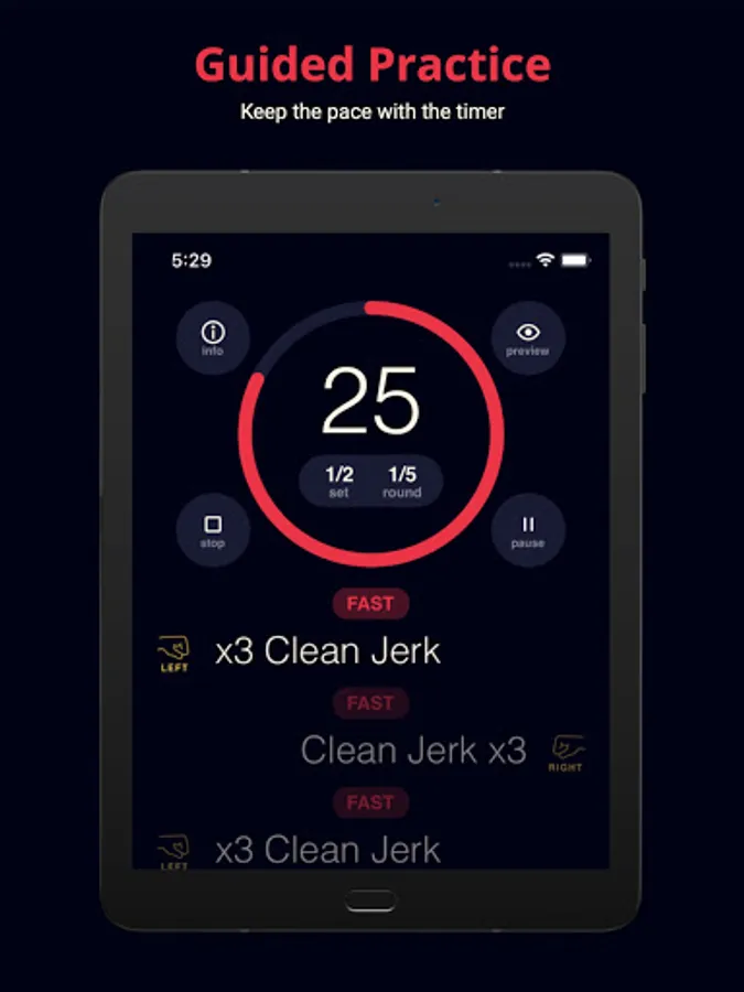 Step by step instruction and timer to help you keep track and progress of the practice.