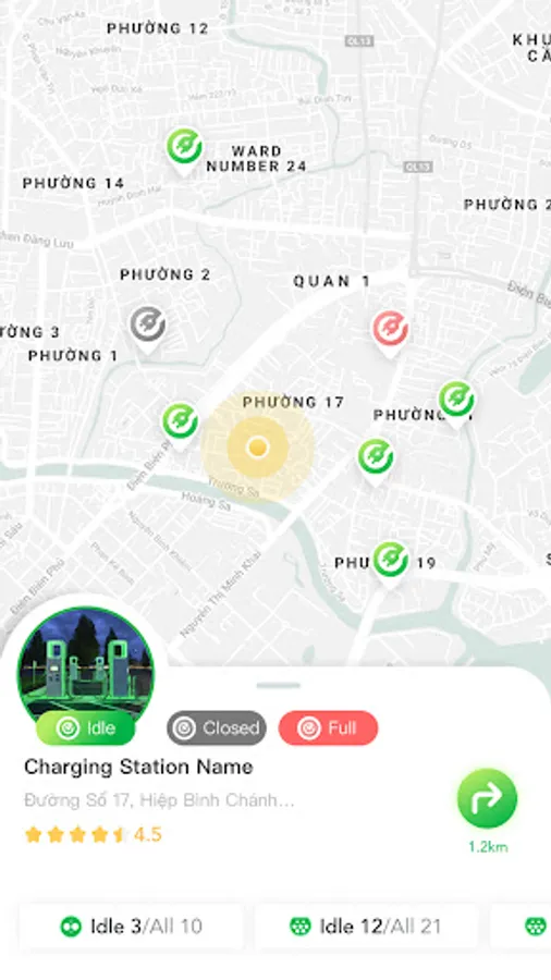 1. Tìm điểm sạc Xe hơi EBOOST này trong ỨNG DỤNG của bạn trên bản đồ, thông qua