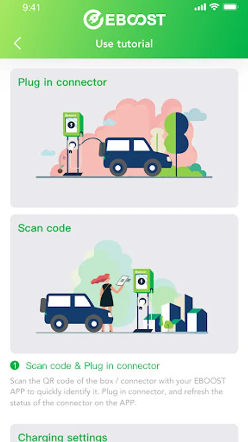 1. Find this EBOOST Car charging point in your APP on map, through filter or QR code