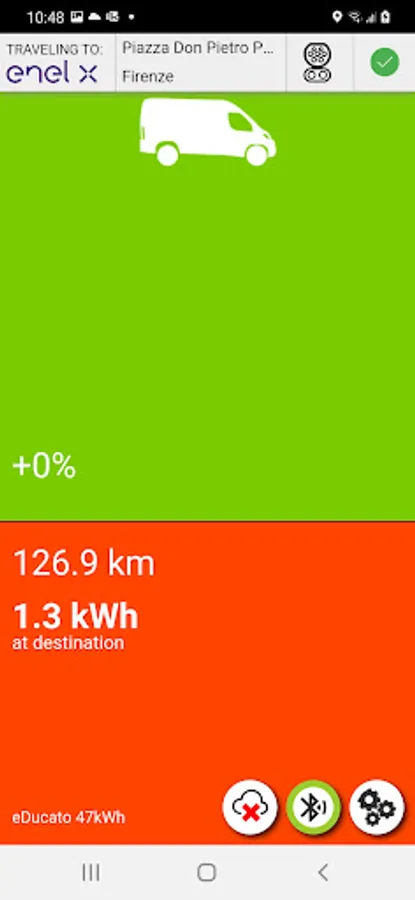 - is real-time connected to the car via a Bluetooth OBDII dongle and knows exactlythe SoC (State of Charge), the SoH (State of Health), the car's speed, instant power, and many other parameters;