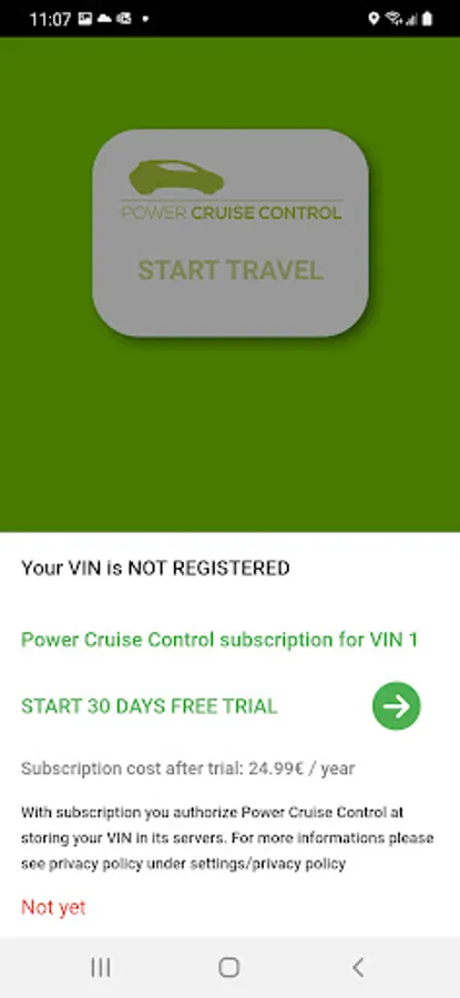 PCC requires an OBDII Bluetooth adapter. A recommended Official Power Cruise Control® adapter is available on https://amzn.eu/f49WbjO