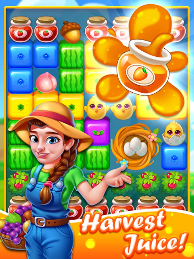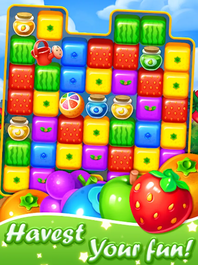 This game is an exciting game about exploding colorful blocks and making crazy matches in a wild world of amazing characters! Embark upon a fantastic adventure as you solve tons of juicy puzzles. All you have to do is tap to match the colored fruit blocks on the screen. There are countless possibilities.The more cubes you tap at one move, the better the chance you’ll unlock a cool booster that will help you defeat the obstacles.
