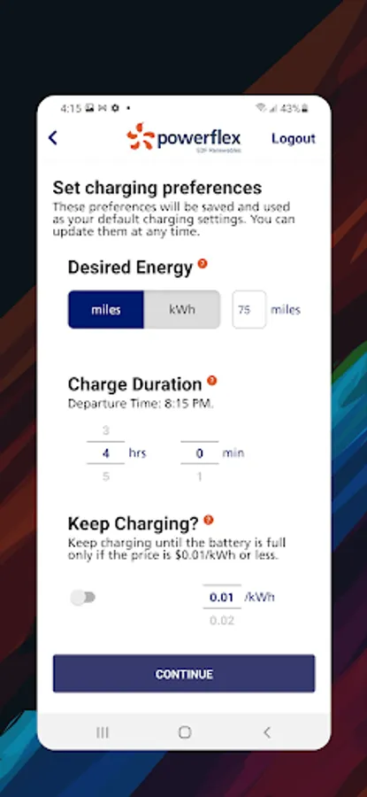 The PowerFlex app enables you to specify your EV energy demand at PowerFlex Adaptive Charging Stations. Use the app to remotely monitor your charging status as well and update your energy demand at any time should your plans change.