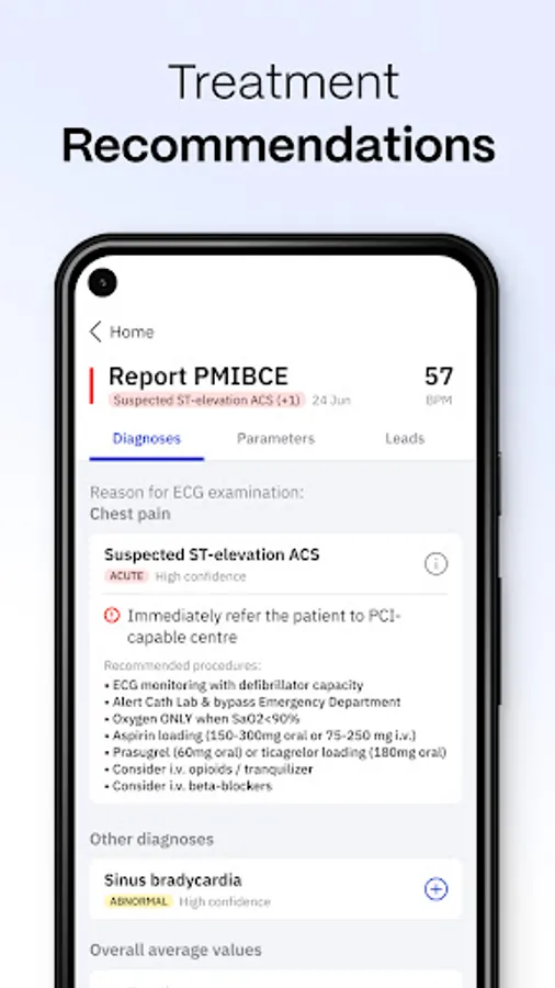 • ECG Interpretation: PMcardio reads any standard 12-lead ECG and diagnoses it with 38.8% average improved detection.