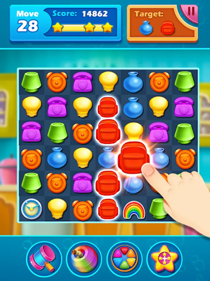 * Home with match 3 puzzle challenges
