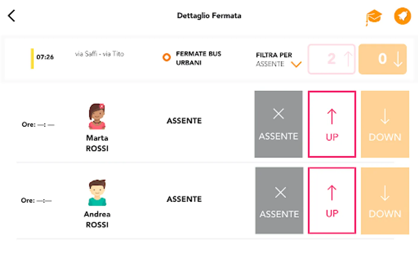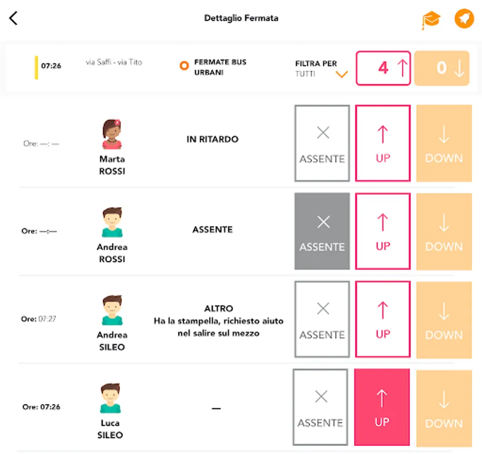 - Check-In, Check-Out or mark the Absence of passengers using the school transport service