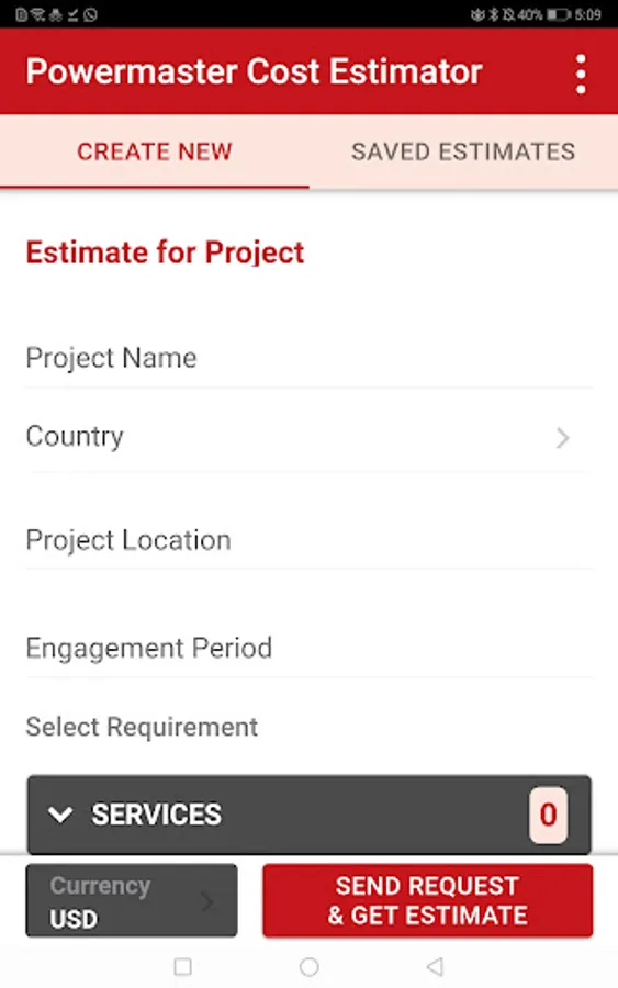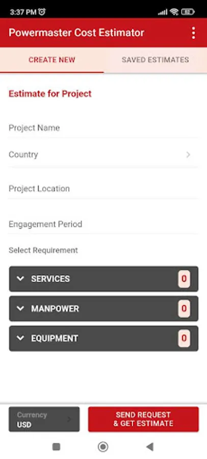 The Powermaster Cost Estimator App enables customers worldwide to receive estimates instantly for their Project requirement in terms of Services, Manpower and Equipment.