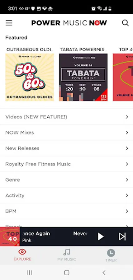 Power Music NOW is the #1 tool for group fitness professionals. It includes a music player with the ability to adjust the BPM of any song in your library on the go, as well as built-in tabata and custom interval timers. You can also access your purchases from PowerMusic.com directly inside the app.