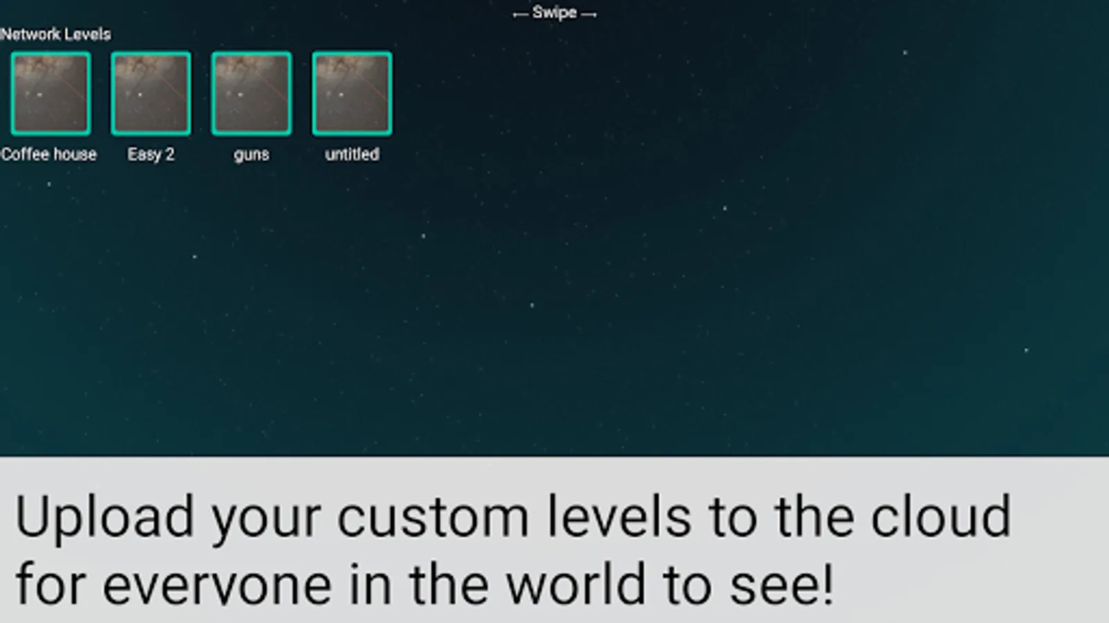 Network Levels section is better than any maze generator as every maze and level in this section has been created by another human being, whether across the world, or one of your friends. To show your mazes to your friends and family, just have them search for your maze by the name you gave it.