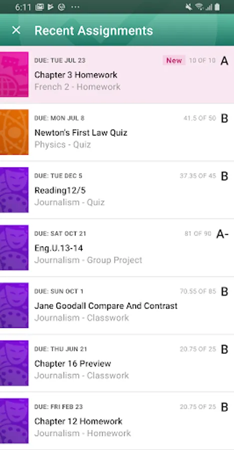 • View a calendar showing all assignment due dates