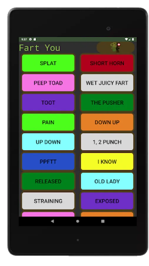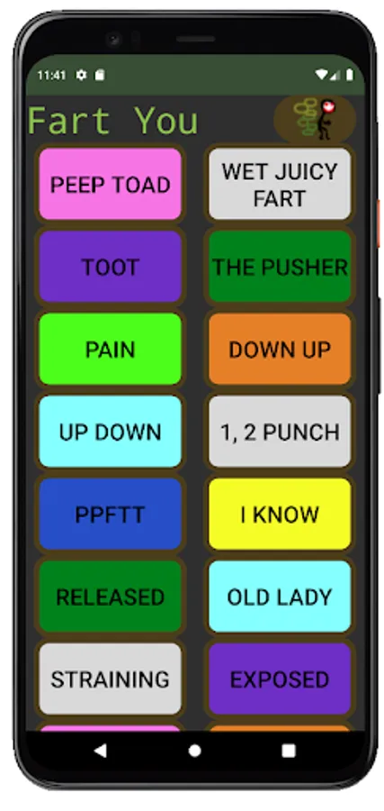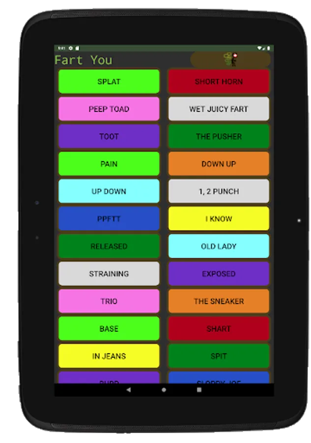 This fart app from Powersjo is for those who want to hear funny fart noises on their android phone. The buttons are in classic soundboard format. Buttons are aptly named and are different colors. Press the buttons to make the different fart noises. The fart app is small in size but big in humor. Some of the noises are Wet farts, short or long, and even an old lady fart.