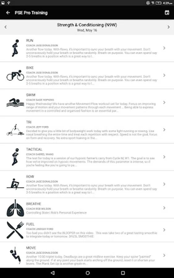 Access your daily training, the PSE video library, the Power Speed Endurance blog, a customized PSE breathing protocol timer and comment on the PSE PRO daily training through the PSE app interface.