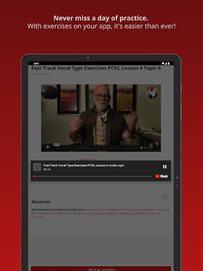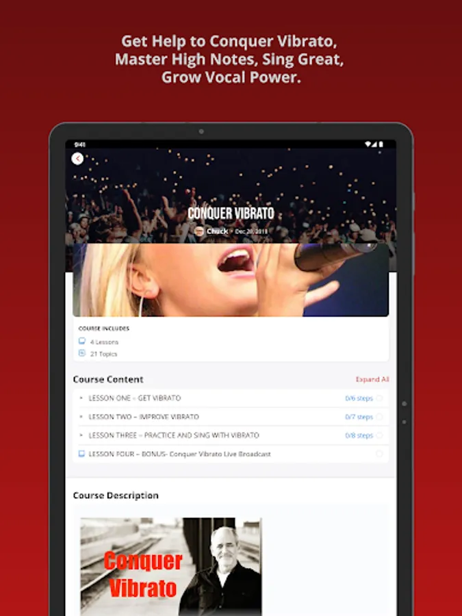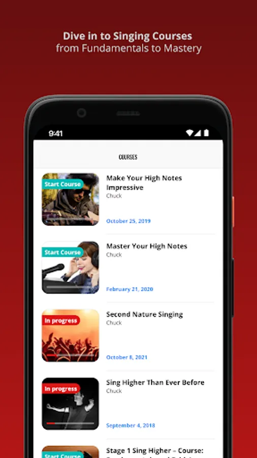 More advanced courses are available for purchase if you want to invest more in your singing. The membership group, Singers Impact, has access to everything in this app.