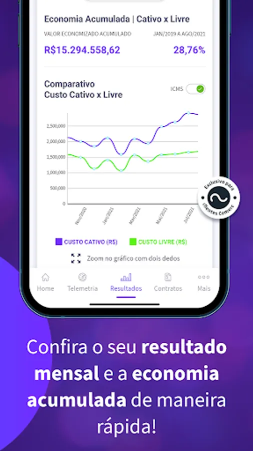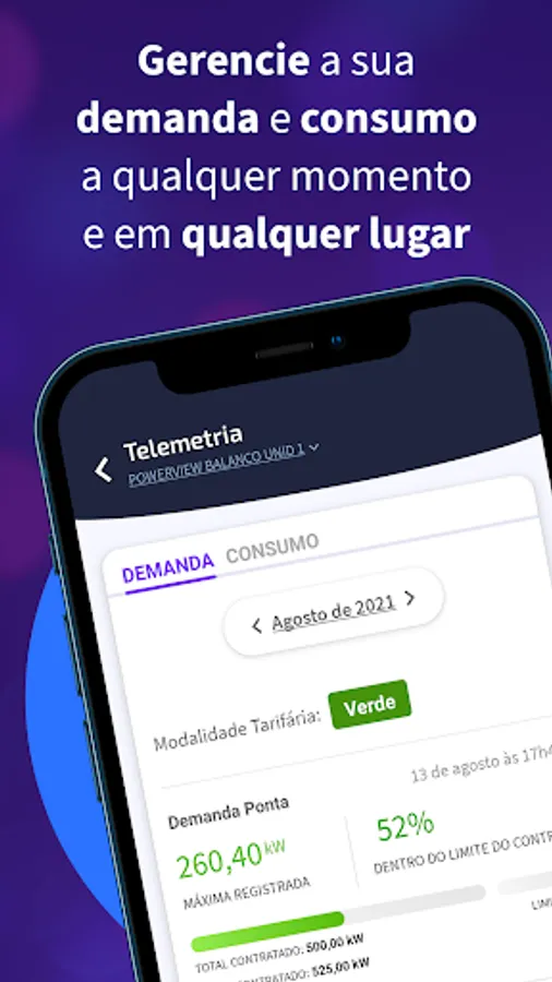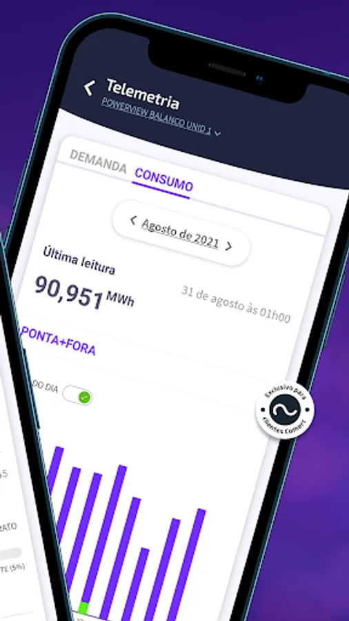 With the PowerView application, by Comerc Energia, you can monitor your company's consumption and demand data, savings and results anytime and anywhere.