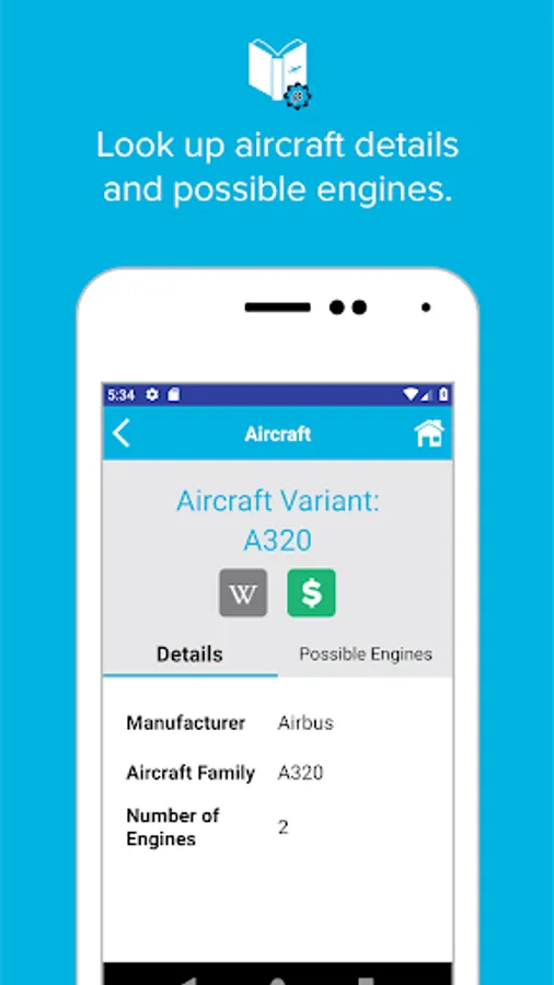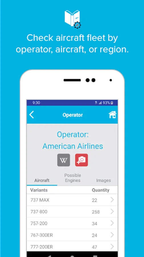 Quickly reference aircraft, engine & operator details with a touch of a button!