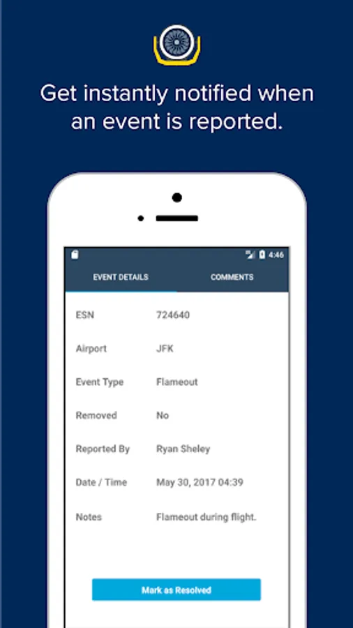 Event details: Get instant notification when maintenance reports an event.