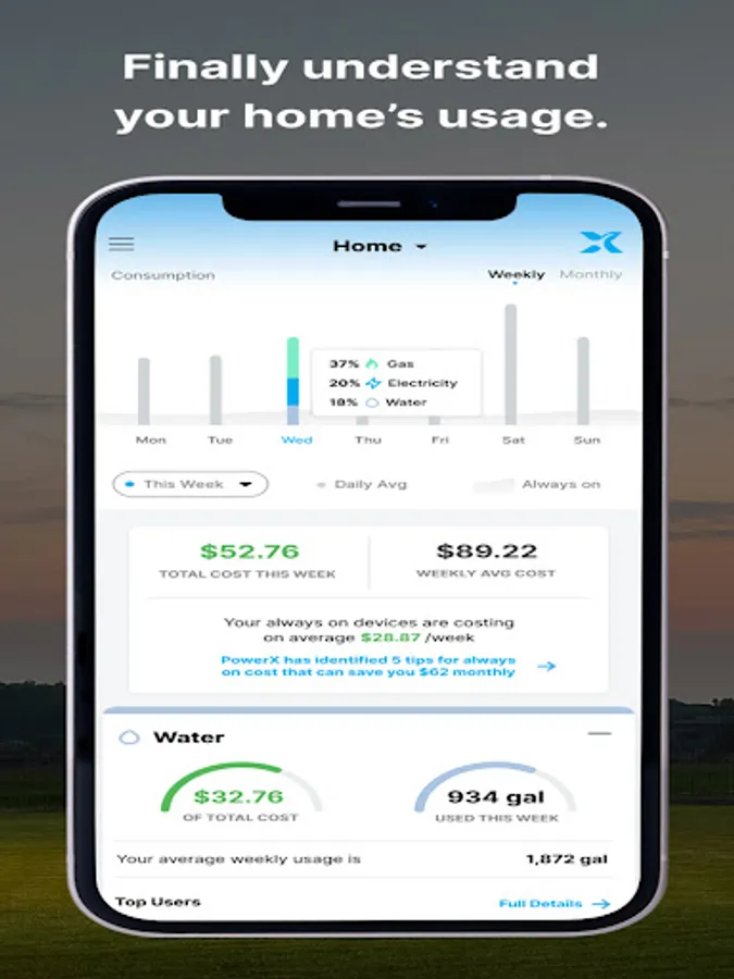 The PowerX app provides homeowners with powerful electricity, water and water heater usage data.