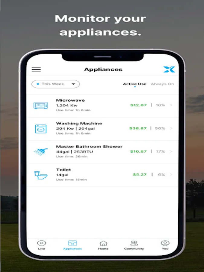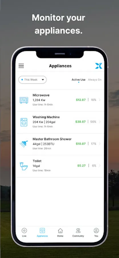 - See how much energy and water your appliances are using and how much it’s costing you