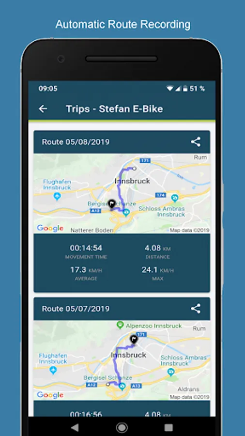 The trips your bike takes are automatically available in the PowUnity App. You can manage them, share them on social media or export to a GPX file.
