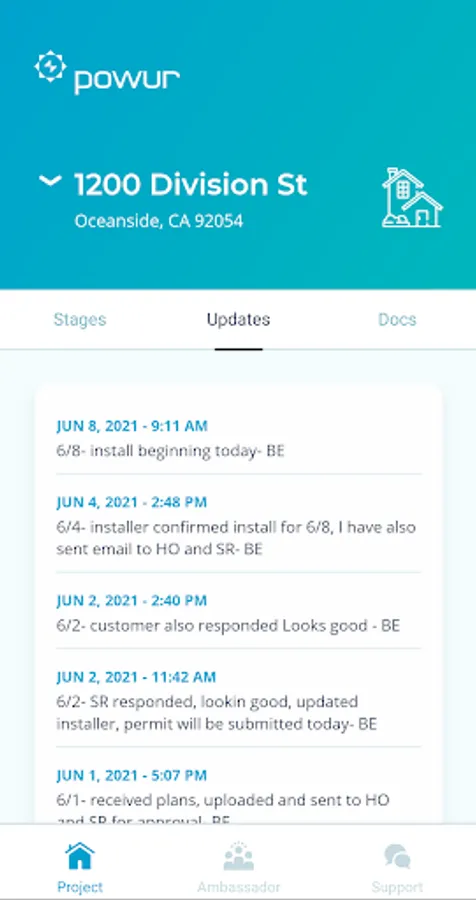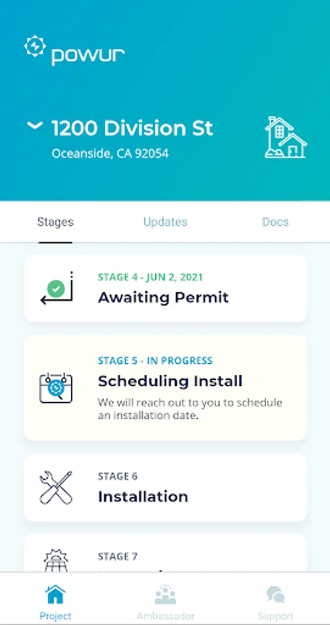 Powur delivers home energy solutions that save you money and lower your carbon footprint, and with the MyPowur app you can put the powur in your pocket by tracking your home installation project in real time! Project milestone tracking, installation notes, and all your key Powur team contacts are accessible through this simple, intuitive interface. Everything you need to track the journey to owning your own Powur Solar Energy. Finally, all your home solar installation information is now in one place!