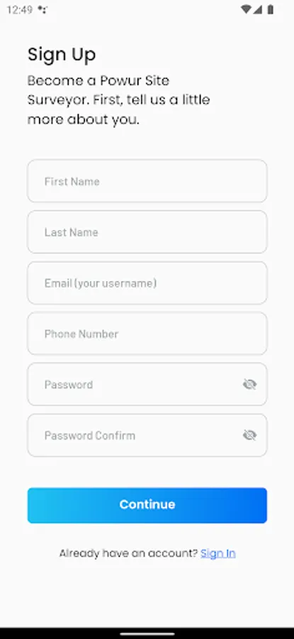 Mobile app for Powur-certified labor partners to conduct solar site surveys and installation activities. Supports onboarding of labor partners, step-by-step recording of photos and home attributes, and job assignment and payment.