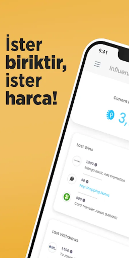 Download the Poyi application and become a member now, meet your Poyi, get used to earning on your shopping! With the Poyi application, your shopping is much more discounted and profitable. You get instant cash after every payment, you can see these cash in your wallet.
