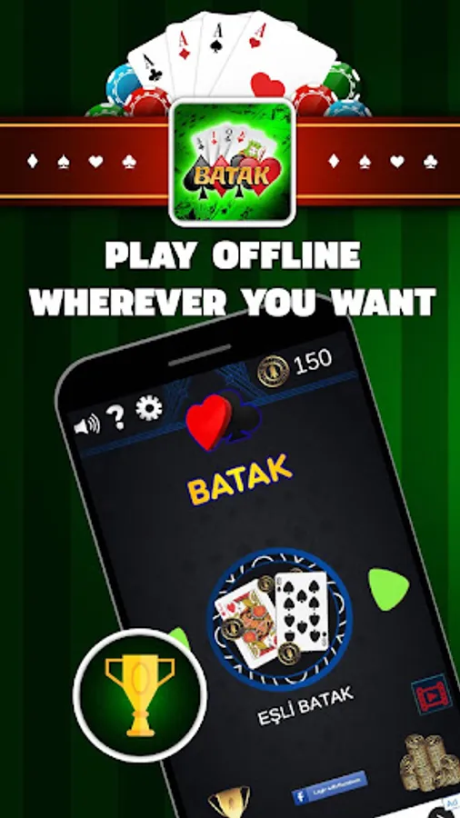 Turkey's most popular card game Batak renovated interface, improved artificial intelligence with you and with extra new features. Extremely simple gameplay makes it easy to play anywhere. In order to spend time in a short time and to win the coin you can open the game and have fun. The game, which can also be played as an intern, can be played in closed places such as subways or in remote places where internet is not attracted.