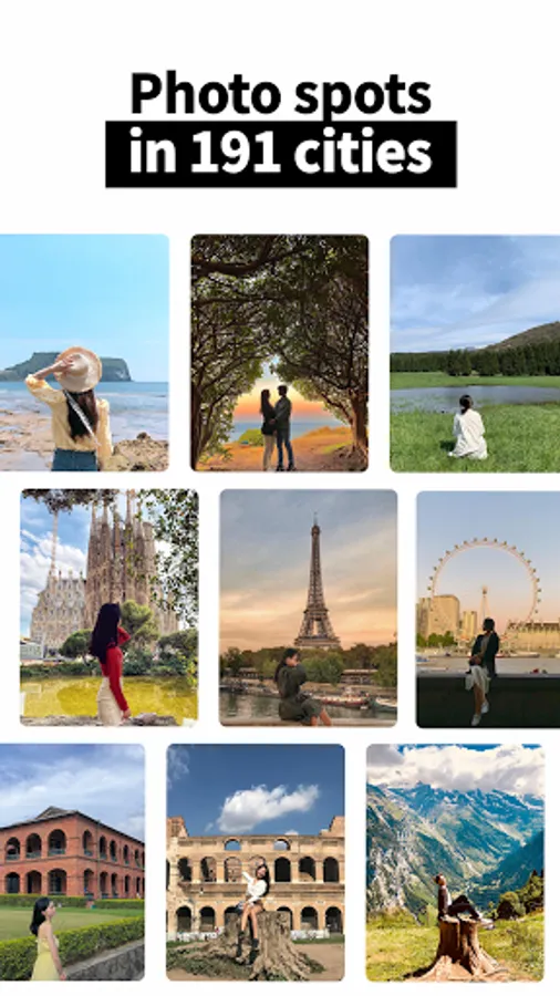 Discover Instagram spots around you and take the best pictures/videos with the guide for them. There are so many Instagram spots in 191 cities around the world on this app.