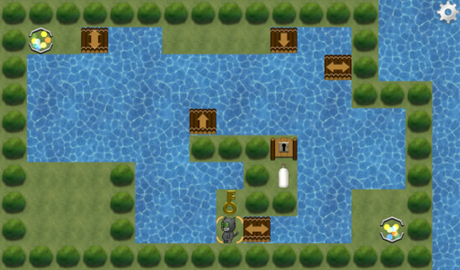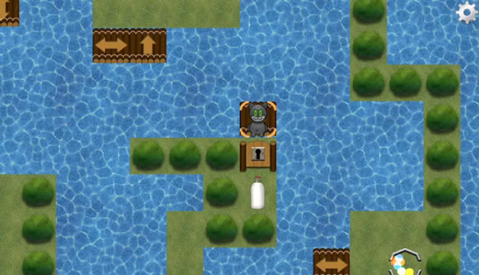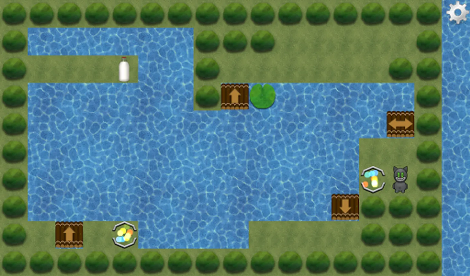 Help the Cat to collect all the bottles of milk without wetting the paws. Make your way through the maze of water hazards using the floating leaves and rafts. On land the Cat will meet wickets, which are impossible to pass through without the keys, and magic portals.