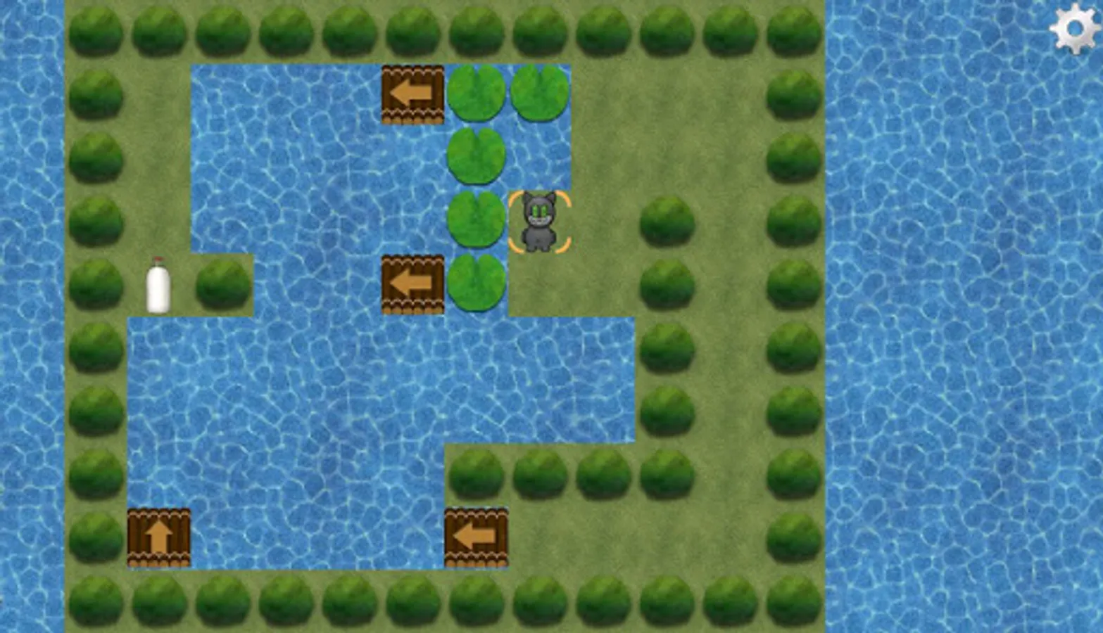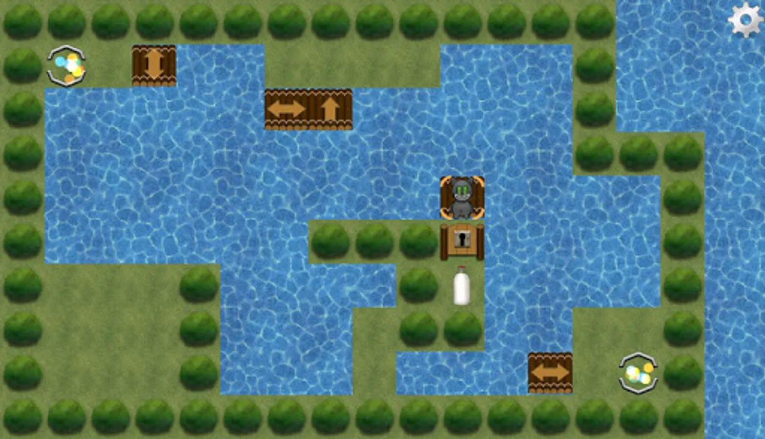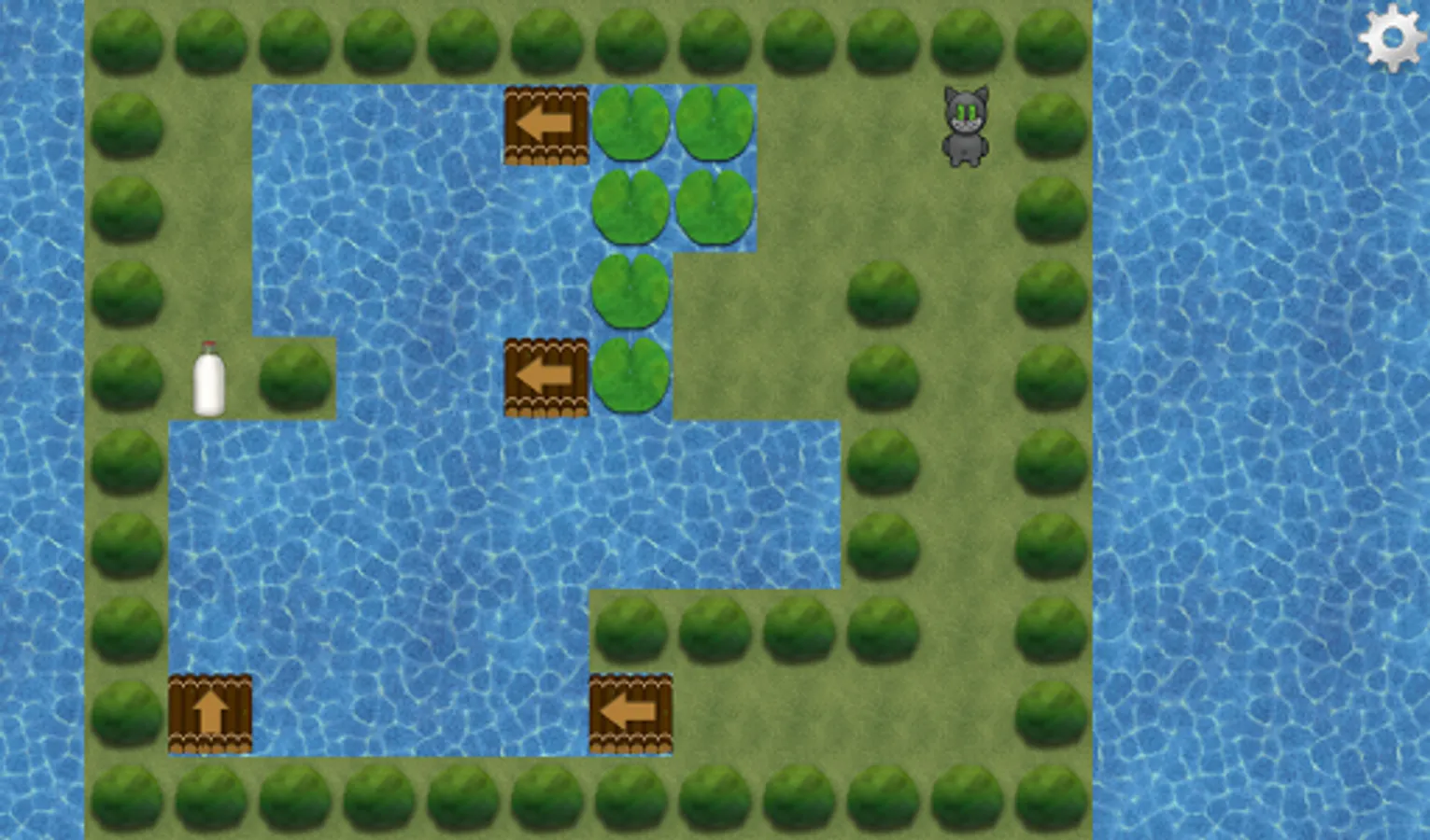 Help the Cat to collect all the bottles of milk without wetting the paws. Make your way through the maze of water hazards using the floating leaves and rafts. On land the Cat will meet wickets, which are impossible to pass through without the keys, and magic portals.