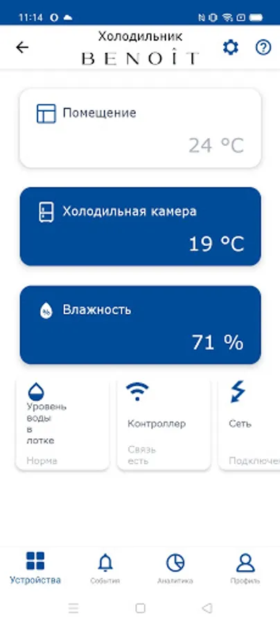 Our application was created in an effort to provide maximum convenience from the use of premium household appliances. When connecting to WiFi, Benoit cigar cabinets are constantly monitored. Content will always be stored under ideal conditions, and the owner will always be calm for its safety. Controlled parameters: power supply, temperature and humidity, water in the humidifier, the presence of communication.