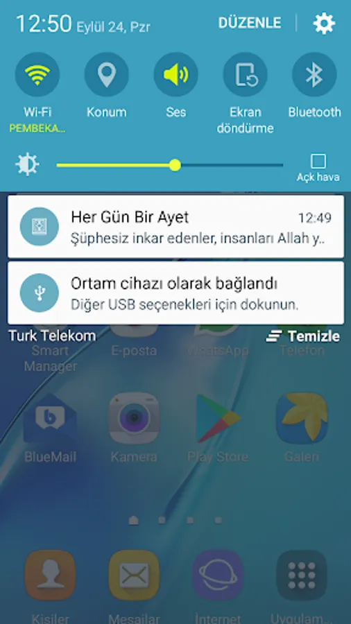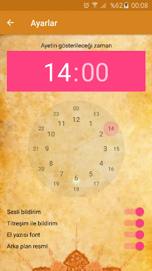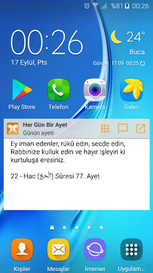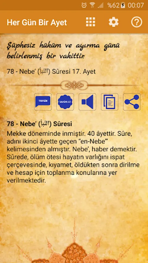 With the notification at the time you set, the Quran displays a verse every day from the kerim.
