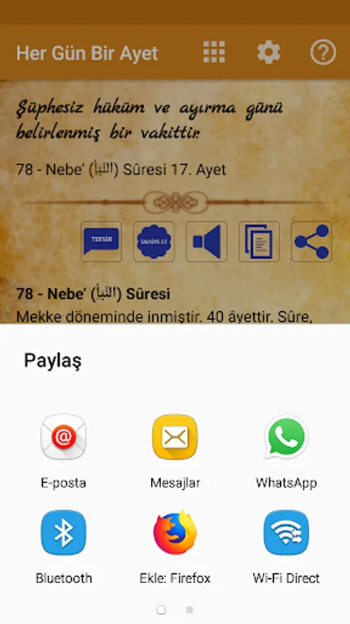 * You can share the verse of the day with the application you like by clicking the Share button (Whatsapp, SMS, E-Mail etc.)